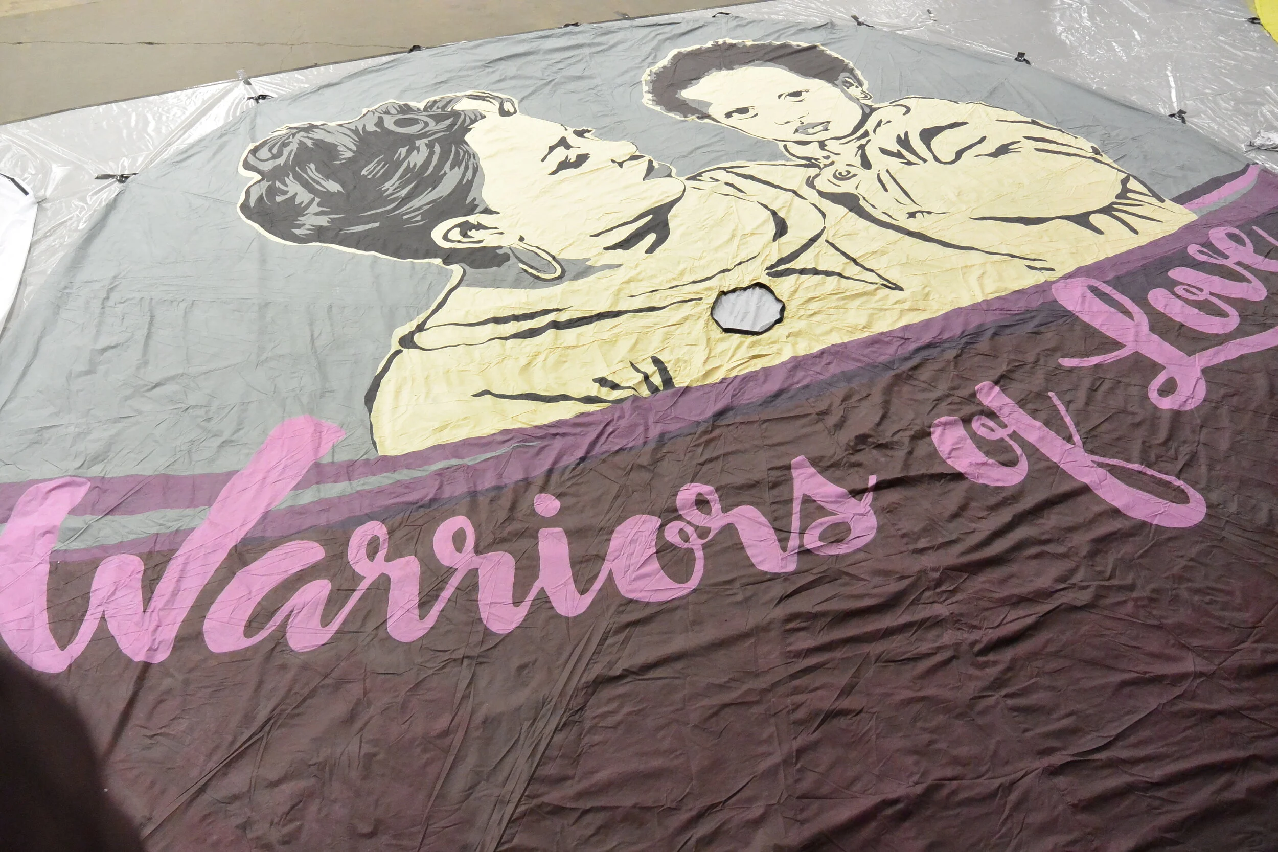Warriors of Love parachute created for Women's March 2017 featuring Rhonda Dormeus & Karsyn Gaines, mother & daughter of Korryn Gaines.